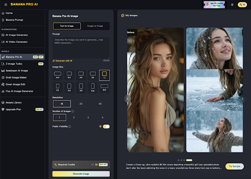 Bindet die Plattform Sie an ein einzelnes proprietäres Modell oder bietet sie Ihnen Zugriff auf eine breite Palette? Banana ProDie Plattform zeichnet sich durch die Integration verschiedener Modelle wie Z Image Turbo und Midjourney-ähnlicher Ausgabeformate aus. Diese Vielfalt schützt vor der schnellen Veralterung einzelner KI-Modelle.