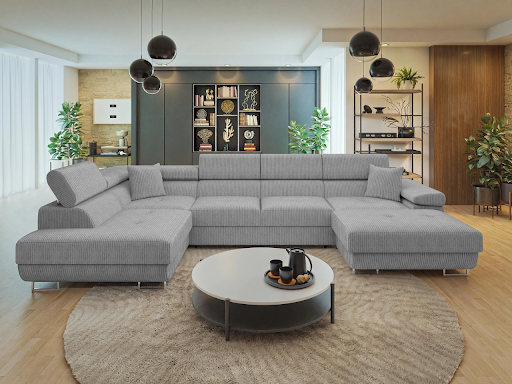 Moderne U-förmige Sofas, die derzeitig auf dem Online-Markt erhältlich sind, sehen äußerst beeindruckend aus und bieten gleichzeitig praktische Funktionen. Sie zeichnen sich durch einfache, geometrische Formen und zeitlose Farben aus, die zu aktuellen Trends in der Inneneinrichtung passen. Aufgrund ihrer Größe stehen sie oft im Mittelpunkt der Raumeinrichtung und markieren den Entspannungsbereich im Wohnzimmer.